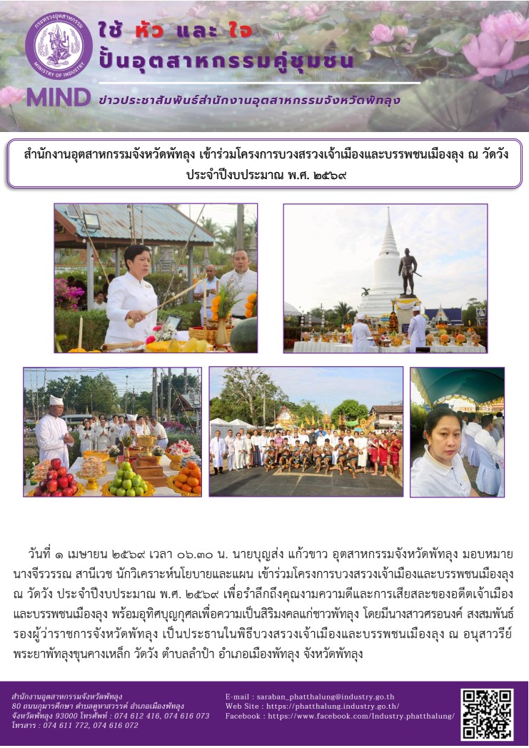 สำนักงานอุตสาหกรรมจังหวัดพัทลุง เข้าร่วมโครงการบวงสรวงเจ้าเมืองและบรรพชนเมืองลุง